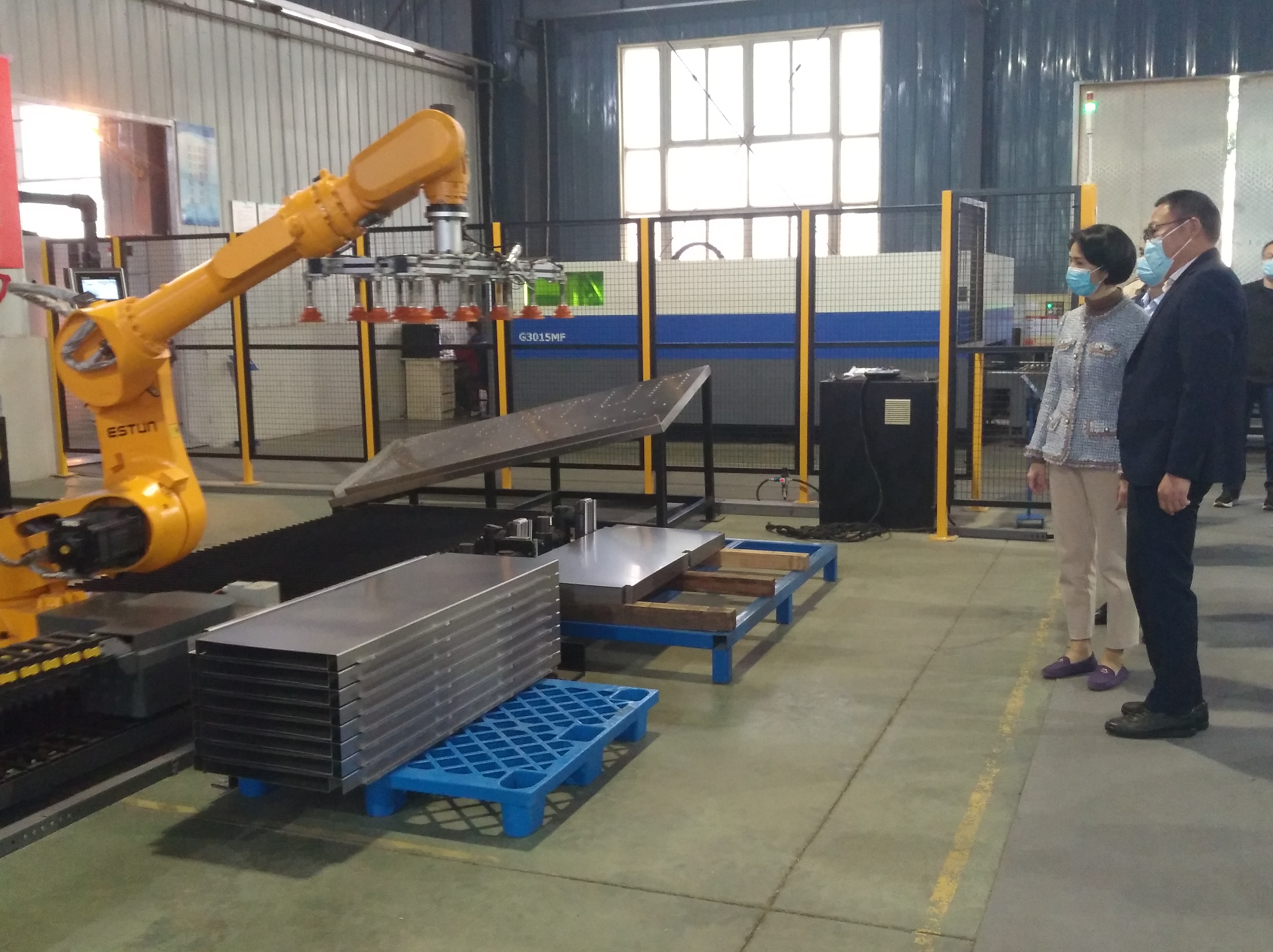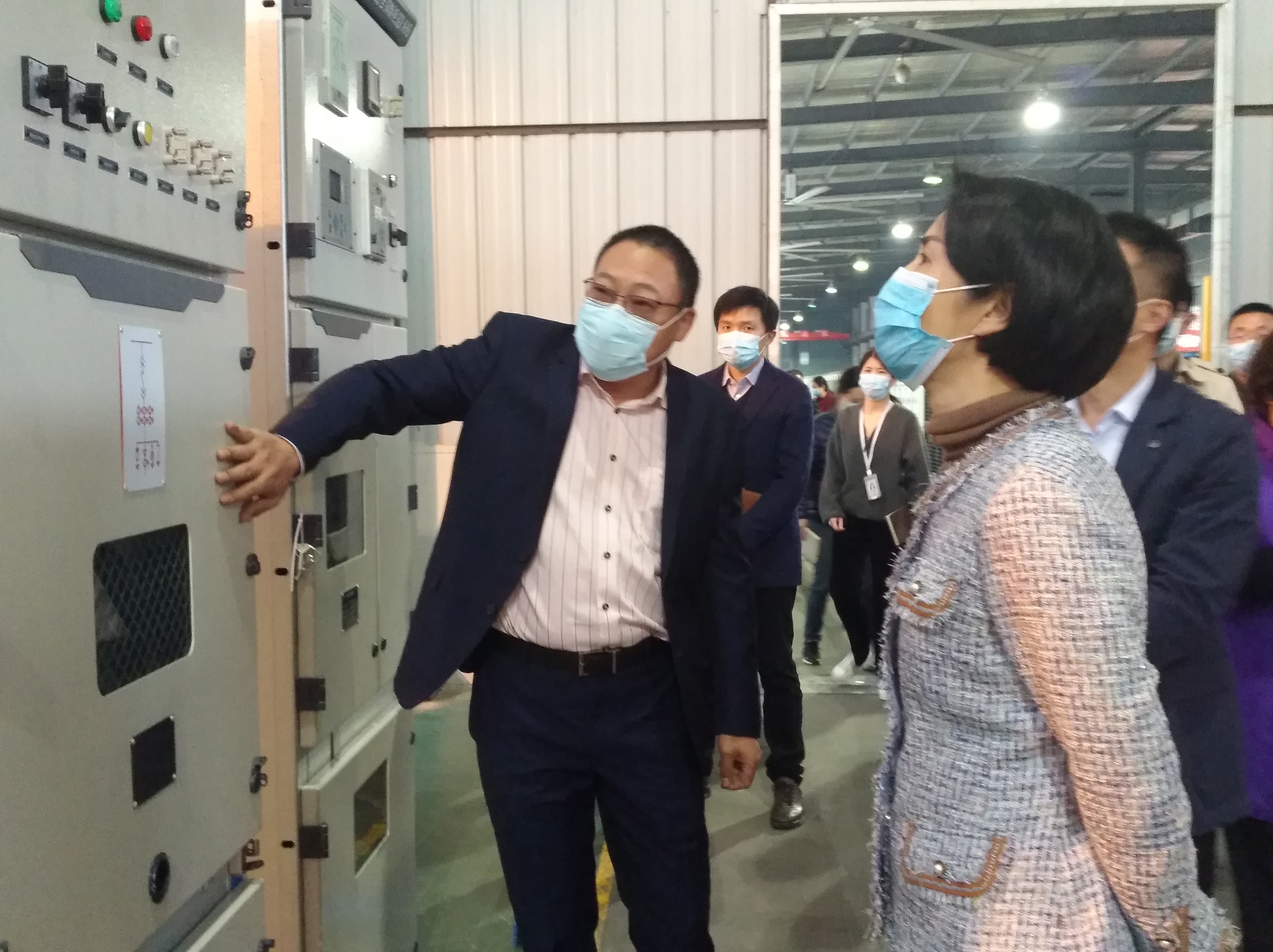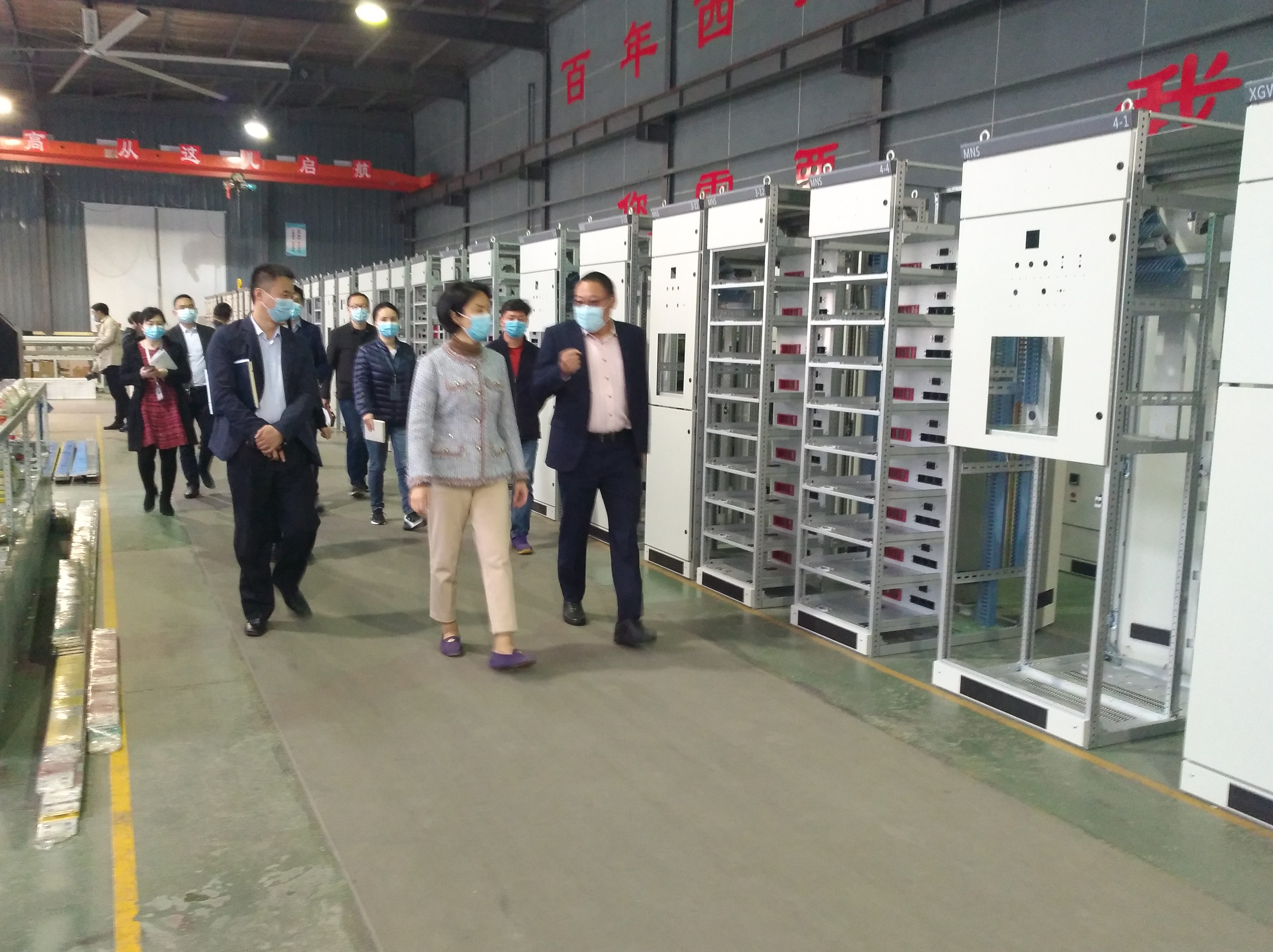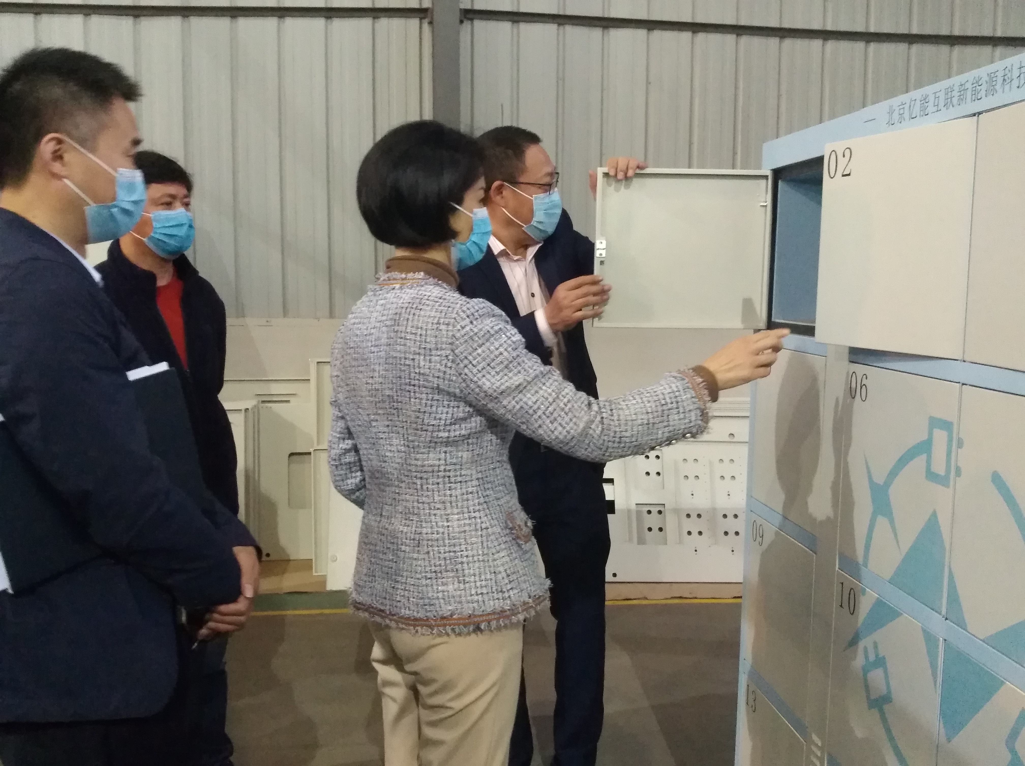 在集團(tuán)公司領(lǐng)導(dǎo)的陪同下,徐書記一行參觀了生產(chǎn)車間全自動(dòng)端子壓著機(jī)、智能機(jī)器人、電動(dòng)自行車電池智能充電柜,邊考察邊提出指導(dǎo)意見。